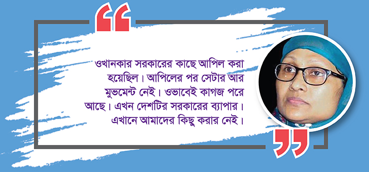 ফিরতে বাধা কোথায় জানতে চাইলে তিনি বলেন, ‘ওখানকার সরকারের কাছে আপিল করা হয়েছিল। আপিলের পর সেটার আর মুভমেন্ট নেই। ওভাবেই কাগজ পড়ে আছে। এখন দেশটির সরকারের ব্যাপার। এখানে আমাদের কিছু করার নেই।’
