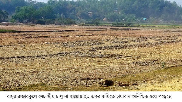 রামুর রাজারকুল ইউনিয়নে সেচ স্কীম নিয়ে জটিলতায় ২০ একর জমিতে চাষাবাদ ব্যাহত হওয়ার আশংকা দেখা দিয়েছে। এতে শতাধিত কৃষক উদ্বিগ্ন হয়ে পড়েছেন। ইতিমধ্যে বোরা চাষাবাদের সময় পার হতে চললেও পানির অভাবে এসব জমিতে নেই সবুজের সমারোহ।