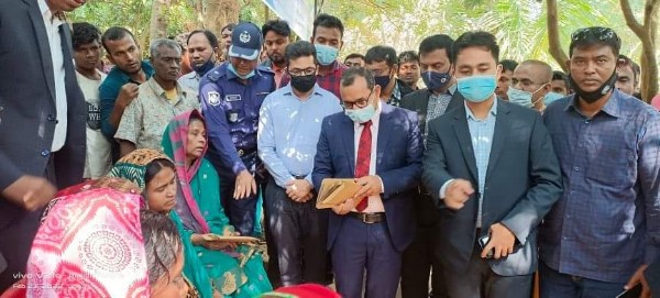 এদিকে একইদিন পরিবারটির পাশে দাঁড়াতে ও ঘটনাস্থল পরিদর্শনে আসেন হিন্দু বৌদ্ধ খ্রিস্টান ঐক্য পরিষদের কেন্দ্রীয় সাধারণ সম্পাদক ও আন্তর্জাতিক অপরাধ ট্রাইব্যুনালের প্রসিকিউটর এডভোকেট রানা দাশগুপ্তের নেতৃত্বে ২৫ সদস্যের একটি প্রতিনিধি দল। তাঁরাও পরিবারটিকে নগদ আর্থিক সহায়তা দিয়েছেন।