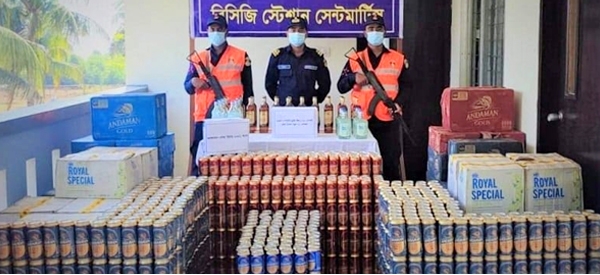সেন্টমার্টিনে ৭০ বস্তা বিদেশি মদ ও বিয়ার জব্দ
