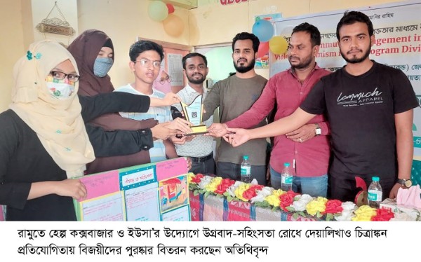 রামুতে হেল্প কক্সবাজার ও ইয়ুথ অরগানাইজেশান ফর সোশ্যাল এ্যাকশান (ইউসা) এর যৌথ উদ্যোগে “চট্টগ্রাম বিভাগের জনগণের সামাজিক সম্পৃক্ততার মাধ্যমে উগ্রবাদ ও সহিংসতা প্রতিরোধ প্রকল্প ” শীর্ষক দেওয়ালিখা ও চিত্রাঙ্কন প্রতিযোগিতার পুরষ্কার বিতরন অনুষ্ঠান সম্পন্ন হয়েছে। ইপসা-সিভিক কনসোর্টিয়াম এর সার্বিক সহযোগিতায় রবিবার (২৭ ফেব্রæয়ারী) বেলা আড়াইটায় রামু চৌমুহনী সংলগ্ন ইয়ুথ অরগানাইজেশান ফর সোশ্যাল এ্যাকশান (ইউসা) নিজস্ব মিলনায়তনে এ পুরষ্কার বিতরন অনুষ্ঠানের আয়োজন করা হয়। গত ২২ ফেব্রæয়ারি (মঙ্গলবার) অনুষ্ঠিত প্রতিযোগিতার ‘প্রেজেন্টেশন ও দেয়ালিখা’ গ্রহণ করা হয়। রবিবার প্রতিযোগিতার ফলাফল ঘোষণা ও পুরষ্কার বিতরণ করা হয়।