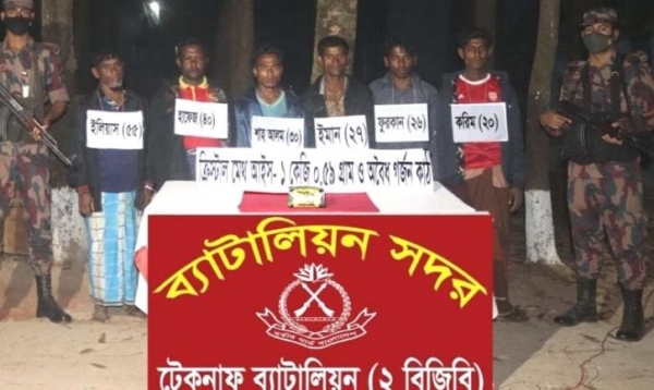 আটককৃতরা হলেন— মিয়ানমারের আকিয়াব জেলার মকতু থানার আনরাই গ্রামের মৃত মুফিজুল্লাহর ছেলে মো. ইলিয়াছ(৫৫), একই এলাকার করিম উদ্দিনের ছেলে মো. করিম (২০), মো. আনুর ছেলে মো. ইমাম হোসেন(২৭), মো. আবুল কালামের ছেলে মো. শাহ আলম(৩০), মৃত জাকারিয়ার ছেলে মো. ফোরকান(২৬) ও আব্দুল করিমের ছেলে আব্দুল হাফেজ (৪০)।