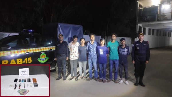 রোববার দিবাগত রাত সাড়ে ১১ টার দিকে এ অভিযান চালানো হয়। এসময় তাদের কাছ থেকে দুইটি ড্যাগার, একটি ছুরি ও একটি খুর উদ্ধার করা হয়েছে বলে জানিয়েছেন র্যাব-১৫ এর সহকারী পরিচালক (আইন ও গণমাধ্যম) মো. বিল্লাল উদ্দিন।