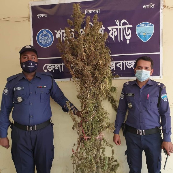 শহর পুলিশ ফাঁড়ির অভিযানে ৭ ফুট উচ্চতার গাঁজার গাছ উদ্ধার