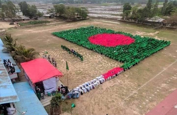 ২৬ মার্চ মহান স্বাধীনতা ও জাতীয় দিবস উদ্যাপন উপলক্ষে শিক্ষা প্রতিষ্ঠান ভিত্তিক দেশের প্রথম ও বৃহৎ মানব জাতীয় পতাকা ডিসপ্লে প্রদর্শিত হয়েছে।