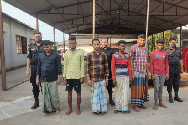 আটকরা হলেন, শাহ জাহান (৩৭),মো. পারভেজ (২৩), মো. আব্দুল মাজেদ (২৭),আমির মো. ফয়সাল (২৪),মো. শাকের (৩০),মো. রফিক আলম (৩৫)।