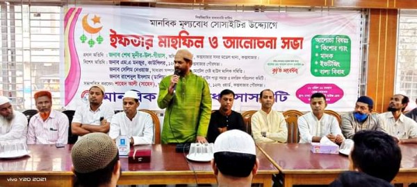 মানবিক মূল্যবোধ সোসাইটির সমন্বয়ক মোঃ মনসুর উদ্দিনের পরিচালনায় সভায় উপস্থিত ছিলেন উপস্থিত ছিলেন ফরহাদ, আসিফ, দেলোয়ার, দিদার, নোমান, আরিফ, মমতাজ, উসমান গণী, আবছার কামাল, আনোয়ার, ইমন, বাপ্পি, জাহেদ, টুটুল, সাকিব, মোরশেদ, সাকিল, আমির হামজা, রাজন, ফারুক, রিমন, মিনহাজ, রবি, তারেক, আব্দুল ওয়াদুদ প্রমূখ। পরে কোরআনে হাফেজ মোঃ কামরুল হাসান তানজিদকে সংবর্ধনা দেওয়া হয়।