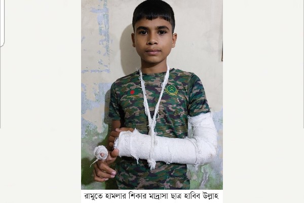 রামুর ফতেখাঁরকুল ইউনিয়নের পশ্চিম মেরংলোয়া গ্রামে তুচ্ছ ঘটনার জেরে প্রতিপক্ষের হামলায় মাদ্রাসা ছাত্র গুরুতর আহত হয়েছে। হাতের দুটি অংশে হাড় ভেঙ্গে যাওয়ায় ওই ছাত্রকে কক্সবাজার সদর হাসপাতালে ভর্তি করা হয়েছে। আহত হাবিব উল্লাহ রামুর মেরংলোয়া রহমানিয়া ইসলামিয়া আলিম মাদ্রাসার অষ্টম শ্রেণির ছাত্র। এ ঘটনায় রামু থানায় লিখিত এজাহার দায়ের করেছেন আহত হাবিব উল্লাহর পিতা ওবাইদুল হক।