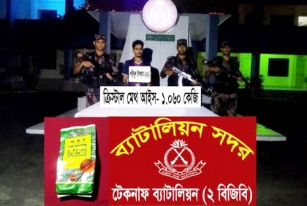 কক্সবাজারের টেকনাফের দমদমিয়া এলাকা থেকে ১ কেজি ৬০ গ্রাম ক্রিস্টাল মেথ আইসসহ শহিদুল ইসলাম (২২) নামে এক রোহিঙ্গাকে আটক করেছে বর্ডার গার্ড বাংলাদেশ (বিজিবি) এর সদস্যরা। টেকনাফ-২ বিজিবি ব্যাটালিয়নের অধিনায়ক লেফটেন্যান্ট কর্নেল শেখ খালিদ মোহাম্মদ ইফতেখার এ তথ্য নিশ্চিত করেছেন।