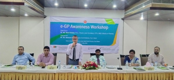 ডাইম্যাপ প্রজেক্টের আওতায় সিপিটিইউ এর পরামর্শক প্রতিষ্ঠান বিসিসিপি এর সহায়তায় ই-জিপি বিষয়ক সচেতনতামূলক কর্মশালাটি আয়োজন করা হয়। কর্মশালার সার্বিক উপস্থাপনা করেন বিসিসিপি’র প্রোগ্রাম ম্যানেজার মোহাম্মদ আব্দুস সালাম।
