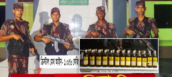 কক্সবাজারের টেকনাফে পৃথক অভিযানে ১ কেজি ৫৬ গ্রাম ক্রিস্টাল মেথ (আইস), ৫০ কেজি সুতার জাল এবং ১৪৩ বোতল বার্মিজ মদ উদ্ধার করেছে বর্ডার গার্ড বাংলাদেশ (বিজিবি)। জব্দ মাদক আইসের মূল্য ৫ কোটি ২৮ লাখ ৯০ হাজার টাকা। এ সময় জব্দ করা হয়েছে মাদক পাচারে ব্যবহৃত কাঠের নৌকা।