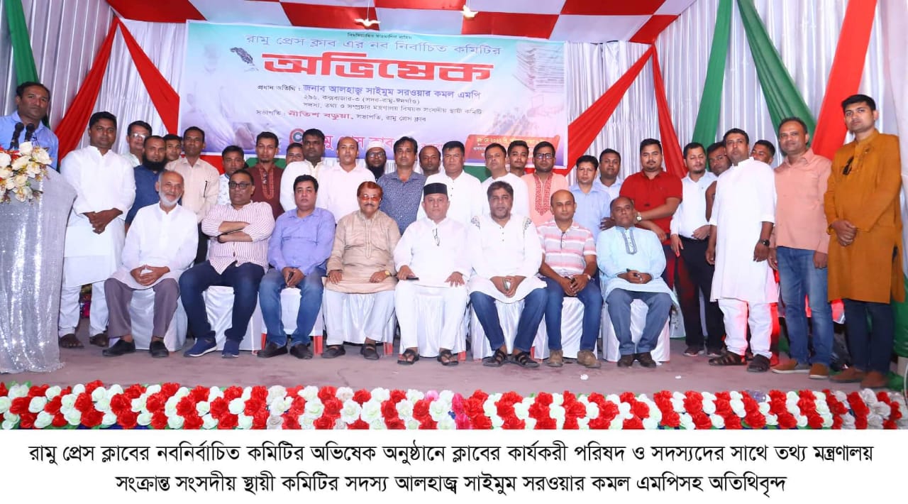 এমন বক্তব্যে ও প্রতিশ্রুতির মাধ্যমে রামু প্রেসক্লাবের নতুন কমিটির অভিষেক অনুষ্ঠিত হলো। এ উপলক্ষে আয়োজিত অনুষ্ঠানে প্রধান অতিথির বক্তৃতা করেন, তথ্য ও সম্প্রচার মন্ত্রণালয়ের সংসদীয় স্থায়ী কমিটির সদস্য সাইমুম সরওয়ার কমল এমপি।