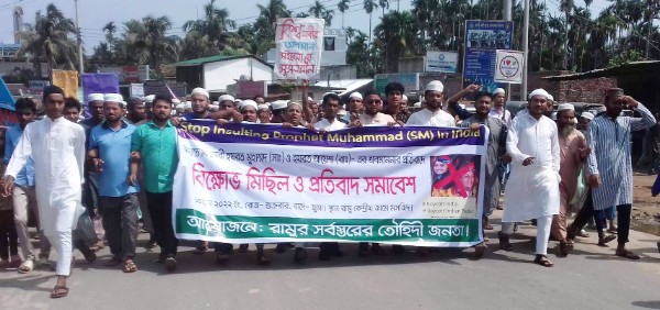 ১০ জুন শুক্রুবার জুমার নামাজের পর রামু কেন্দ্রীয় জামে মসজিদ থেকে রামুর সর্বস্তরের মুসলিম তৌহিদি জনতার ব্যানারে অনুষ্টিত বিক্ষোভ মিছিল ও প্রতিবাদ সভায় শত শত মুসল্লী অংশ গ্রহণ করেন। ‘বিশ্ব নবীর অপমান সইবে না আর মুসলমান’ শ্লোগানে শ্লোগানে মিছিলটি রামু চৌমুহনী গোলচত্বরে এসে শেষ হয়।  মিছিল পরবর্তী বিক্ষোভ সমাবেশে রামু চৌমুহনী ষ্টেশন জামে মসজিদের ইমাম ও রামু জামেয়াতুল উলুম মাদ্রাসার সিনিয়র শিক্ষক মৌলানা আব্দুল হান্নান বলেন, আমাদের প্রতিবাদ কোন রাষ্ট্রের বিরোদ্ধে নয়। আমাদের বিশ্ব নবী হজরত মুহাম্মদ (সাঃ) কে অবমাননা কারির বিরোদ্ধে। তিনি বলেন, আমরা চাই না কোন ধর্মের কিংবা ধর্মীয় মহান ব্যক্তির বিরোদ্ধে কুটুক্তি করে কেউ যেন পার পেয়ে না যায়। সমাবেশে বক্তারা ভারত সরকারের মুখপাত্রের এহেন বক্তব্যের নিন্দা জানান এবং বিশ্ব নবী হজরত মুহাম্মদ (সাঃ) ও হজরত আয়েশা (রাঃ) এর অবমাননা কারিদের যতাযত শাস্তি প্রদানের আহবান জানান। উল্লেখ্য যে