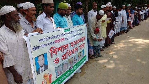 বাইশারীতে নাইক্ষ্যংছড়ি প্রেসক্লাবের আহবায়ক কমিটির সদস্য দৈনিক মানব কন্ঠ ও দৈনিক বাঁকখালী পত্রিকার নাইক্ষ্যংছড়ি প্রতিনিধি সিনিয়র সাংবাদিক আবদুর রশিদের উপর সন্ত্রাসী হামলার প্রতিবাদে বিশাল মানববন্ধন কর্মসূচি পালন করেছে সমাজের সকল স্তরের মানুষ । শুক্রবার (১০ জুন) বেলা আড়াই টার সময় বাইশারী পেঠান আলী পাড়া জামে মসজিদের পুকুর পাড়ে এ মানববন্ধন ও প্রতিবাদ সভা অনুষ্ঠিত হয়। সাংবাদিক রশিদের উপর হামলাকারীদের গ্রেপ্তার ও শাস্তির দাবীতে অনুষ্ঠিত মানববন্ধন ও প্রতিবাদ সভায় বক্তব্য রাখেন,প্রেসক্লাবের প্রতিষ্ঠাতা সভাপতি মাঈনুদ্দিন খালেদ,আহবায়ক আবদুল হামিদ,যুগ্ন আহবায়ক আমিনুল ইসলাম,সদস্য সচিব জাহাঙ্গিল আলম কাজল,সদস্য যথাক্রমে জয়নাল আবেদীন টুক্কু,মোঃ ইউনুছ ও মোঃ শাহীন, পেঠান আলী পাড়া জামে মসজিদ সহ-সভাপতি সব্বির আহমদ,শামশুল আলম,সমাজ কমিটির সর্দার ও মসজিদ সংলগ্ন মাদরাসা কমিটির সভাপতি একরামুল হক রাজু, মসজিদের দাতা সদস্য জালাল আহাম্মদ প্রমূখ। এতে বক্তারা বলেন হামলার মূল পরিকল্পনা কারী কুখ্যাত সন্ত্রাসী রফিক, মহিলা সন্ত্রাসী ডাইনিদের দ্রুত গ্রেফতার করে আইনের আওতায় আনা না হলে আরও কঠোর কর্মসূচি দিতে বাধ্য হবেন তারা। অপরদিকে বাইশারী ইউনিয়ন পরিষদের চেয়ারম্যান মোঃ আলম কোম্পানিকে সাংবাদিক আবদুর রশিদের উপর হামলার বিষয়ে বাইশারী প্রবাসী কল্যাণ সমবায় সমিতি লিমিটেডের পক্ষ থেকে আমাকে স্মারক লিপি দিয়েছেন তিনি বাইশারী প্রবাসী কল্যাণ সমবায় সমিতি লিমিটেডের উপদেষ্টা তাই সকল প্রবাসীর পক্ষ থেকে স্মারক লিপি দেওয়া হয়েছে। এ ঘটনার বিষয়ে বাইশারী তদন্ত কেন্দ্রের ভারপ্রাপ্ত কর্মকর্তা মোসলেম উদ্দিন বলেন, সন্ত্রাস ও অপরাধ দমনে পুলিশের পাশাপাশি ইউনিয়ন পরিষদ, গ্রাম পুলিশ,আনসার ভিডিপিসহ সকলে এগিয়ে আসলে এধরণের ঘটনা হতো না।