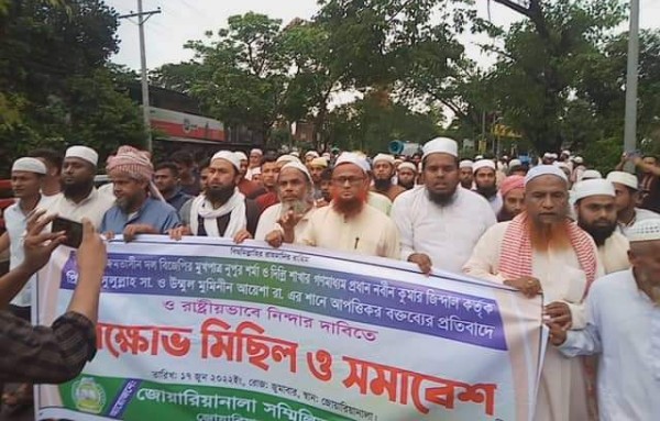 বিক্ষোভ মিছিল গুরুত্বপূর্ণ সড়ক প্রদক্ষিণ শেষে জোয়ারিয়ানালা বাজার স্টেশনে মিছিলটি সমাপ্ত হয়। বিক্ষোভ মিছিল শেষে সংক্ষিপ্ত সমাবেশ অনুষ্ঠিত হয়৷ সমাবেশে বক্তারা বলেন প্রিয় নবি হযরত মুহাম্মদ দঃ ও মা আয়েশা (রাদিঃ) শানে কটুক্তি করা হয়।