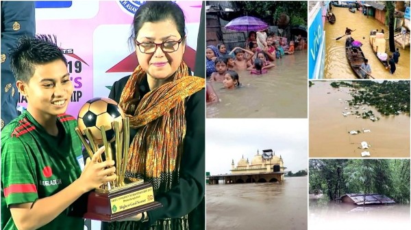 বন্যায় ভাসছে সিলেট, সুনামগঞ্জসহ দেশের বিভিন্ন অঞ্চল। অবর্ণনীয় ভোগান্তির শিকার কয়েক লাখ মানুষ। তরুণ প্রজন্মের অনেকেই নিজেদের মতো করে এসব মানুষকে সাহায্য করতে এগিয়ে আসছেন। এবার বন্যার্তদের জন্য ভিন্ন উদ্যোগ নিলেন বাংলাদেশ মহিলা অনূর্ধ্ব-১৯ ফুটবল টিমের স্ট্রাইকার শাহেদা আক্তার রিপা। অনূর্ধ্ব-১৯ চ্যাম্পিয়নশীপে পাওয়া তার সেরা গোলদাতার ট্রফি নিলামে তুলতে চান তিনি। সেই অর্থ দিয়ে তিনি সহায়তা করবেন বন্যায় সর্বস্ব ভেসে যাওয়া মানুষদের।