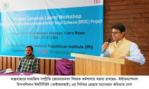কক্সবাজারে সামাজিক সম্প্রীতি জোরদারকরণ বিষয়ক কর্মশালা অনুষ্ঠিত হয়েছে। রবিবার, ৩১ জুলাই কক্সবাজার হোটেল বেস্ট ওয়েস্টার্ণ হল রুমে এ কর্মশালার আয়োজন করে পালস বাংলাদেশ সোসাইটি। ইন্টারন্যাশনাল রিপাবলিকান ইন্সটিটিউট (আইআরআই) এর অর্থায়নে আয়োজিত এ কর্মশালায় সভাপতিত্ব করেন- পালস বাংলাদেশ সোসাইটির প্রধান নির্বাহী সাইফুল ইসলাম চৌধুরী কলিম।