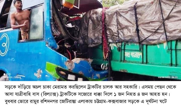 রামুর রশিদনগরে সড়ক দুর্ঘটনায় নি*হত ১, আহত ৪
