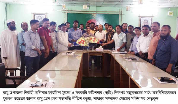 রামু উপজেলা সহকারি কমিশনার (ভূমি) নিরুপম মজুমদার বলেন- দাপ্তরিক কাজের পাশাপাশি একে একে রামুর জনগুরুত্বপূর্ণ সমস্যা চিহ্নিত করে তা সমাধানে আন্তরিকভাবে কাজ করে যাবেন। এজন্য সাংবাদিকদের বস্তুনিষ্ঠু লেখনী ও সহযোগিতা প্রয়োজন। সাংবাদিকদের কল্যাণেও তিনি সার্বিক সহযোগিতার আশ^াস দেন।