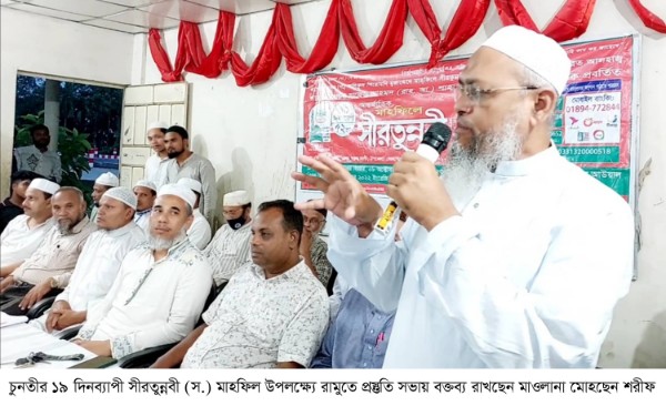 চুনতীর ১৯ দিন ব্যাপী ৫২ তম মাহফিলে সীরতুন্নবী (স.) সফল করার লক্ষ্যে রামুতে প্রস্তুতি সভা অনুষ্ঠিত হয়েছে। শনবার (১০ সেপ্টেম্বর) বাদে আছর রামু ল্যাবরেটরী স্কুলে আয়োজিত প্রস্তুতি সভায় প্রধান মেহমান ছিলেন, শাহ সাহেব কেবলা (রহ.) এর দৌহিত্র ও মাহফিলের মুতাওয়াল্লী কমিটির সাংগঠনিক সম্পাদক মওলানা আব্দুল মালেক মুহম্মদ ইবনে দিনার নাজাত।