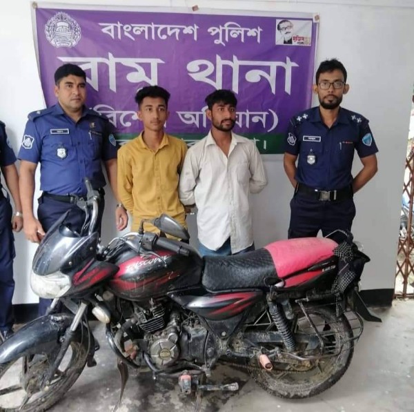রামুর কাউয়ারখোপে মোটরসাইকেল চুরির অপরাধে চোরাই মোটরসাইকেল সহ ২ চিহ্নিত চোরকে আটক করে পুলিশ।