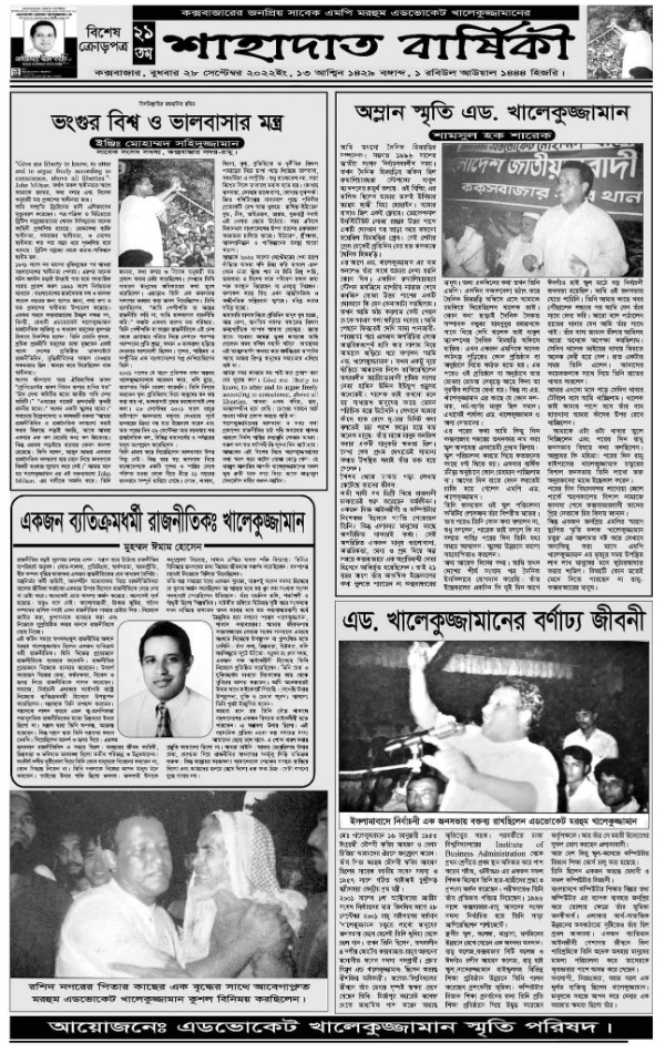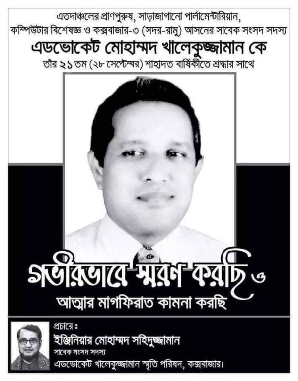 কক্সবাজার সাবেক সাংসদ এড. খালেকুজ্জামানের মৃত্যু বার্ষিকী উপলক্ষে বিশেষ ক্রোড়পত্র By Executive Editor - September 28, 2022 0 9 সংবাদ বিজ্ঞপ্তি: সাবেক সাংসদ এড. খালেকুজ্জামানের মৃত্যু বার্ষিকী উপলক্ষে বিশেষ ক্রোড়পত্র।