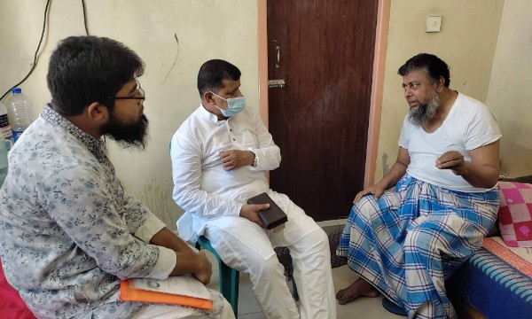 শিক্ষক বোরহান উদ্দিনের সয্যাপাশে সচিব মোমিনুর রশিদ আমিন