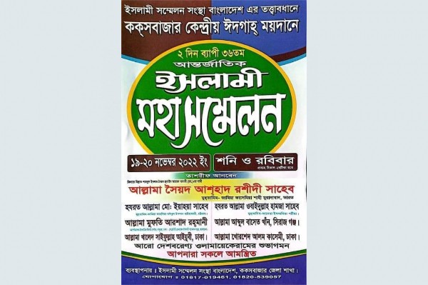 কক্সবাজারে ২দিনব্যাপী আন্তর্জাতিক ইসলামী মহাসম্মেলন ১৯ ও ২০ নভেম্বর