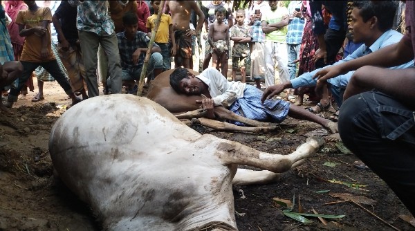 নুর আহমদ জানান, হঠাৎ আচমকা বজ্রপাতে তার তিনটা গাভি, ২০ দিন বয়সের ১টি ছাগল ছানা ও ১ টি মুরগি একইসাথে মারা যায়। গাভি তিনটির পেটে বাঁচুর থাকার কথাও জানান এই দিনমজুর।