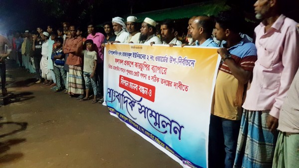 এদিকে এ নির্বাচনে প্রহসনমূলক ও কারচুপির প্রতিবাদে বৃহষ্পতিবার (৩ অক্টোবর) বিকালে এলাকায় মানবন্ধন, প্রতিবাদ সমাবেশ সম্মেলন অনুষ্ঠিত হয়। এতে নির্বাচনে প্রতিদ্বন্ধি ৫ প্রার্থী যথাক্রমে আলী আকবর (টিউবওয়েল), শামসুল আলম (মোরগ), ছানা উল্লাহ (আপেল), দুদু মিয়া (তালা) এবং আবুল হাশেম (ফুটবল) সহ এলাকার গন্যমান্য ব্যক্তিবর্গ ও শত শত জনতা অংশ নেন।