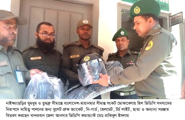 বান্দরবান জেলা আনসার ভিডিপি কমান্ড্যান্ট মোঃ রাকিবুল ইসলাম জানিয়েছেন- সীমান্ত এলাকার বিরাজমান অস্থিতিশীল পরিস্থিতিতে বিপদজনক ও ঝুঁকিপূর্ণ এলাকা থেকে অত্র এলাকার জনসাধারণকে নিরাপদ দুরত্বে সরিয়ে নেয়া, সীমান্ত সংলগ্ন বিজিবি ক্যাম্পগুলোতে হিল ভিডিপি সদস্যদের দ্বারা প্রয়োজনীয় রসদ সরবরাহ, রোহিঙ্গা অনুপ্রবেশের বিষয়ে সজাগ থাকা এবং হিল ভিডিপি সদস্যদের মাধ্যমে রোহিঙ্গা অনুপ্রবেশ প্রতিরোধ করাসহ সীমান্তবর্তী এলাকায় সন্দেহভাজন অস্বাভাবিক চলাফেরা এবং যানবাহন চলাচল নিয়ন্ত্রণে হিল ভিডিপিদের সক্রিয় ভূমিকা পালনে তিনি কাজ করে চলেছেন।