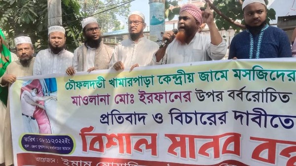 চৌফলদণ্ডীতে নিরীহ মুয়াজ্জিনের ওপর সন্ত্রাসী হামলার প্রতিবাদে মানববন্ধন