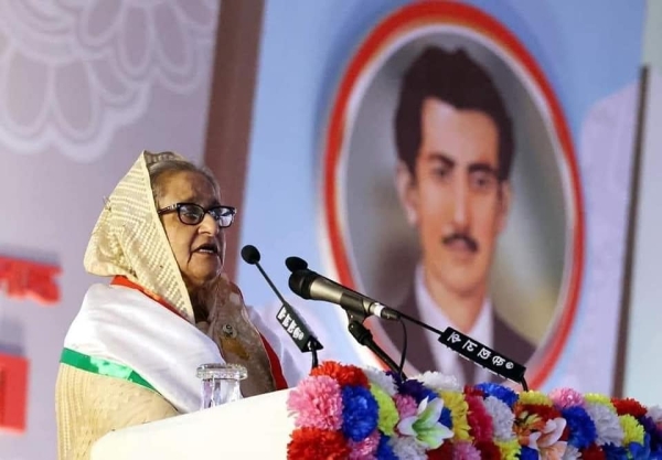 সরকারপ্রধান বলেন, আজকের যুবলীগের ৫০তম প্রতিষ্ঠাবার্ষিকী অর্থাৎ সুবর্ণজয়ন্তী। সকল যুবলীগ নেতাকে আমি অভিনন্দন জানাই। জাতির পিতা বঙ্গবন্ধু শেখ মুজিবুর রহমান ১৯৭২ সালে ১১ নভেম্বর যুবলীগ প্রতিষ্ঠিত করেন। জাতির পিতার নির্দেশে যে যুবলীগকে পরিচালনা করেছিলেন সেই শেখ মণিকে ১৫ আগস্ট নির্মমভাবে হত্যা করা হয়। আমি আজ যে মাঠে ভাষণ দিচ্ছি সেই ঐতিহাসিক মাঠে ১৯৭১ সালে ৭ মার্চ মুক্তিযুদ্ধের ডাক দিয়েছিলেন জাতি পিতা। সেই ভাষণ বিএনপি নিষিদ্ধ করেছিল। এখন জাতির পিতার সেই ভাষণ ঐতিহাসিক হিসেবে স্বীকৃতি পেয়েছে।