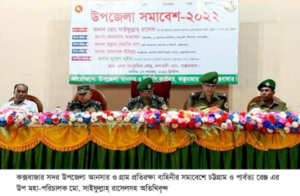 কক্সবাজার সদর উপজেলা আনসার ও ভিডিপি কর্মকর্তা জুয়েল ভূইয়ার সভাপতিত্বে সমাবেশে প্রধান অতিথি ছিলেন- বাংলাদেশ আনসার ও গ্রাম প্রতিরক্ষা বাহিনী চট্টগ্রাম ও পার্বত্য রেঞ্জ এর উপ-মহা-পরিচালক মো. সাইফুল্লাহ্ রাসেল। বিশেষ অতিথি ছিলেন-খাগড়াছড়ির দিঘীনালা ২১ আনসার ব্যাটালিয়নের পরিচালক মো. ফেরদৌস আহাম্মদ, কক্সবাজার জেলা কমান্ড্যান্ট অ¤øান জ্যোতি নাগ এবং আনসার ভিডিপি উন্নয়ন ব্যাংক কক্সবাজার সদর উপজেলা শাখার ব্যবস্থাপক মোঃ ইউনুছ।
