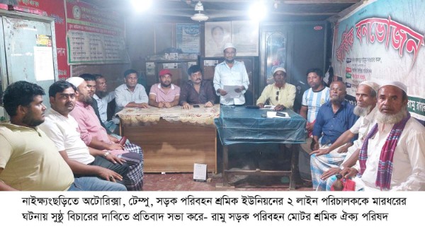 রামু সড়ক পরিবহন মোটর শ্রমিক ঐক্য পরিষদের প্রতিবাদ: পরিবহণ ধর্মঘটের হুশিয়ারি