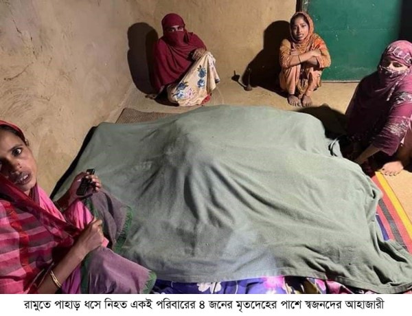 উল্লেখ্য বুধবার (৭ ডিসেম্বর) রাত আটটায় রামু উপজেলার কাউয়াখোপ ইউনিয়নের পাহাড় পাড়া ঝর্ণামুরা এলাকায় পাহাড় ধসে মারা যান আজিজুর রহমান ও তাঁর স্ত্রী রহিমা খাতুন, শাশুড়ি দিল ফুরুজ বেগম ও পুত্রবধূ নাসিমা আকতার। পাহাড় ধসে একই পরিবারের ৪ জনের মর্মান্তিক মৃত্যুর ঘটনায় পরিবার-পরিজন ও এলাকাজুড়ে চলছে শোকের মাতম।