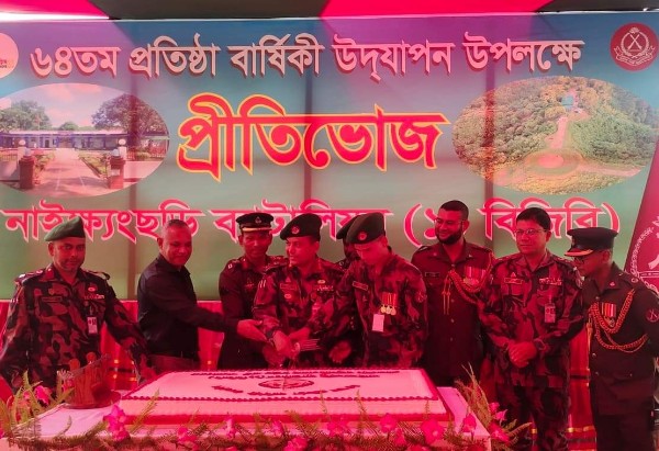 দুপুরে ব্যাটালিয়ন সদর দপ্তরে কেক কেটে অনুষ্ঠান উদ্বোধন করেন কক্সবাজারের রিজয়ন কমান্ডার ব্রিগেডিয়ার জেনারেল নাজম-উস-সাকিব।