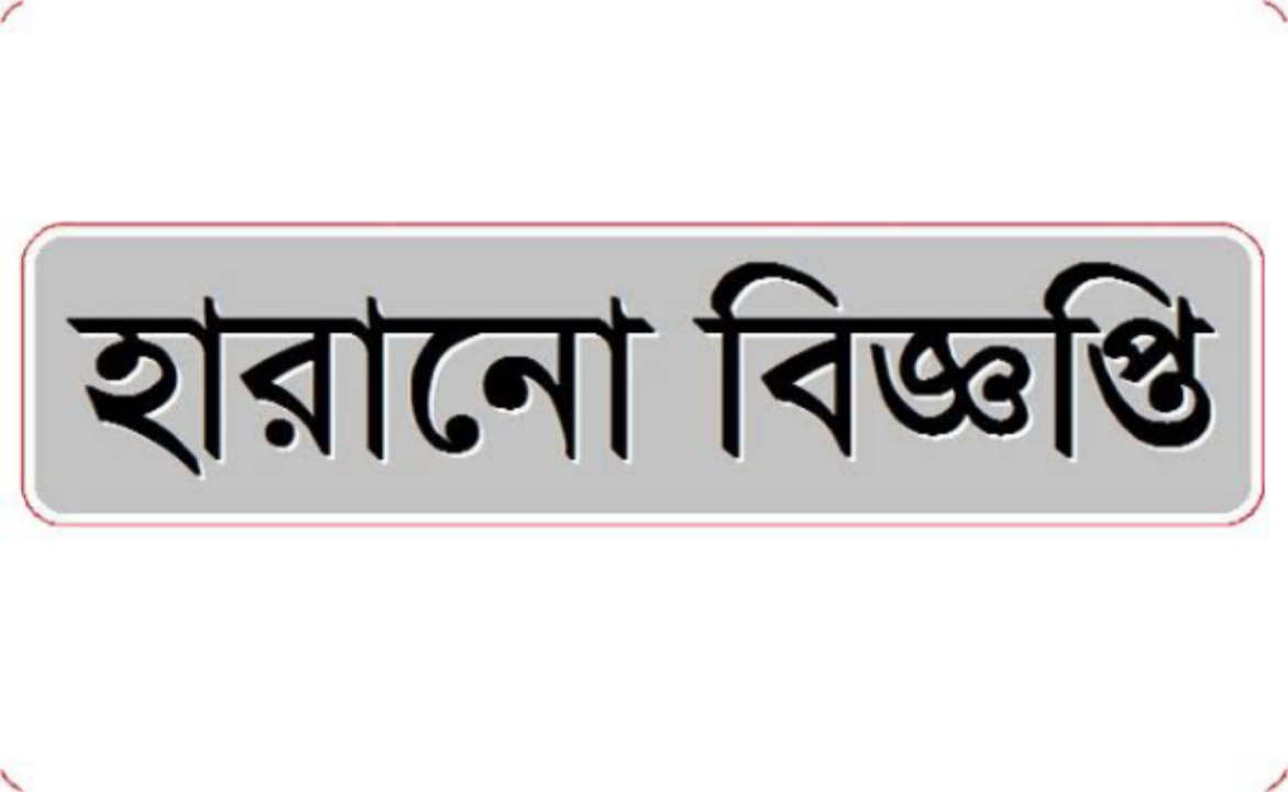 এই মর্মে জানাইতেছি যে, বিগত ১৫/০৮/২০২৫ ইং তারিখ সন্ধ্যা আনুমানিক ৬ টার সময় ইনানী থেকে কক্সবাজার কলাতলী সুগন্ধা পয়েন্ট আসার সময় আমার মানিব্যাগে থাকা নিম্নে বর্ণিত কাগজপত্রাদি আমার নিজের অজান্তে হারিয়ে যায়।